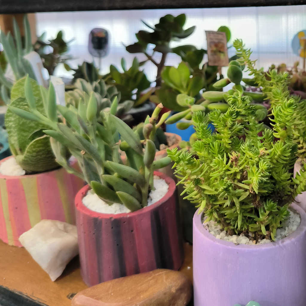 Hay suculentas de $1000 y $2000 pesos. Y arreglos de $3000 a $6000 pesos.